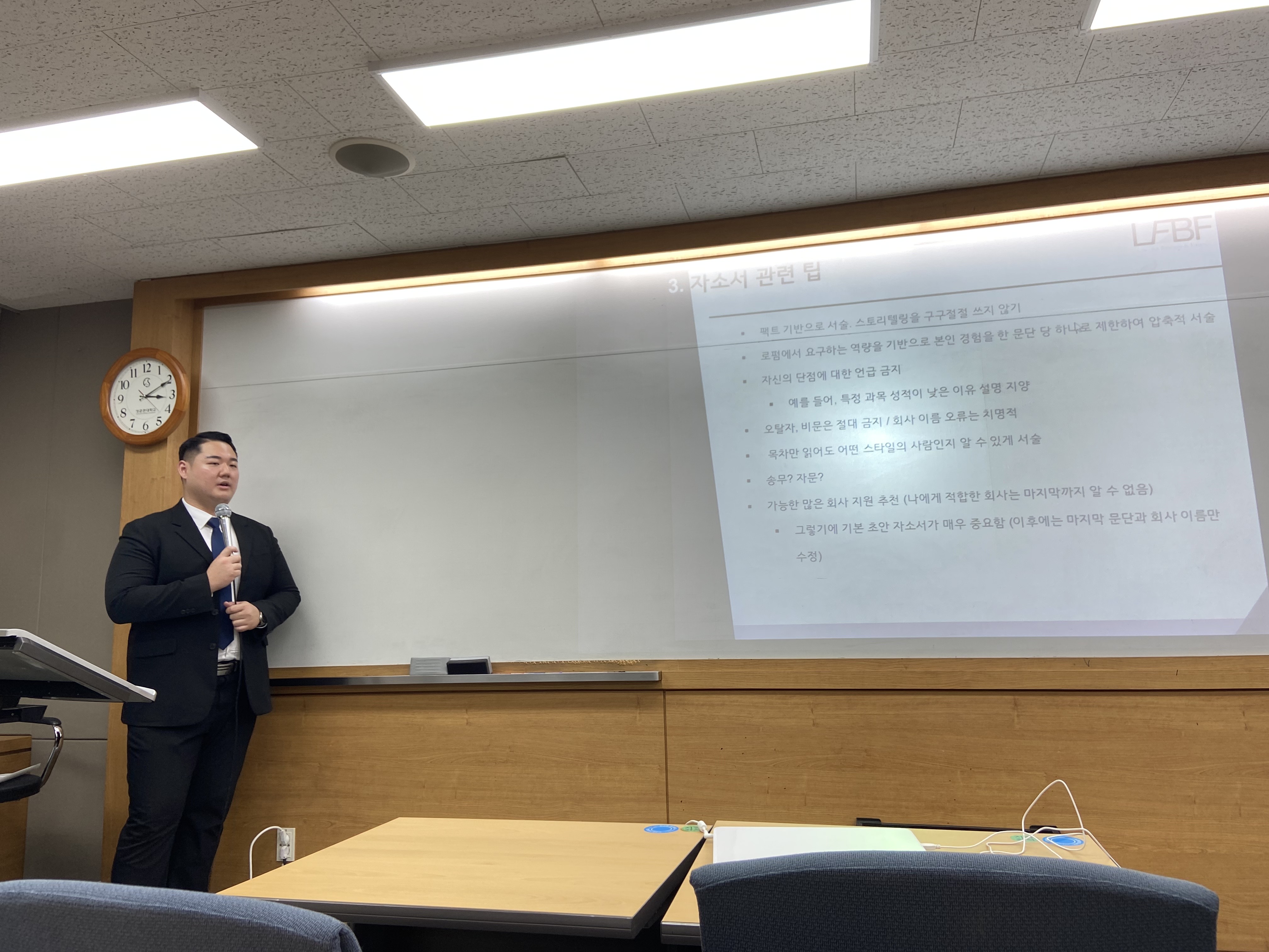 2023년 8월 22일, 컨펌되신 LFBF 14기 선배님들께서 1학년 겨울 로펌 인턴 자기소개서 작성방법 관련 강의를 해주셨습니다. 일반적인 자기소개서 특강 후, 약 4개조로 나누어 1시간 가량 개별 첨삭을 진행하는 과정을 거쳤습니다. 입학 후 처음 자기소개서를 작성해본 1학년 학회원들에게 큰 도움이 되었습니다. 이 자리를 빌...