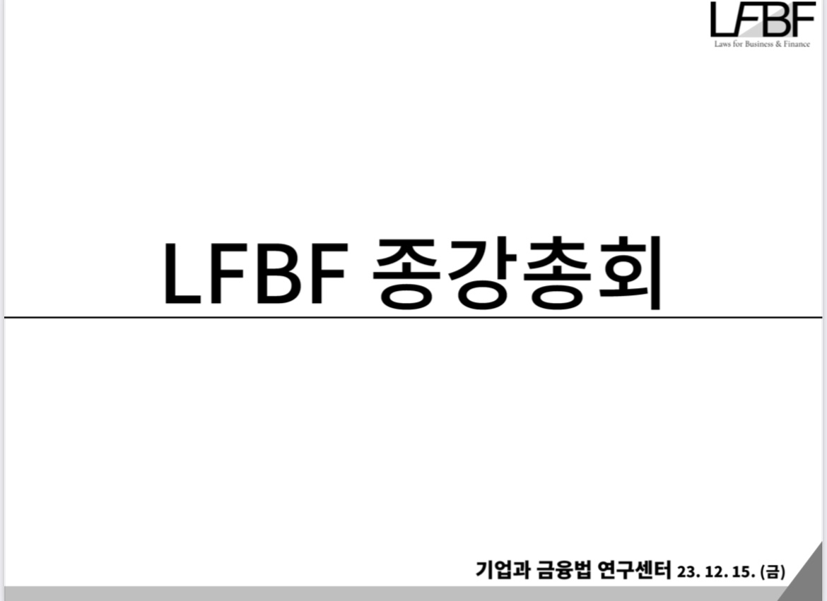 2023년도 한국상사법학회 하계국제학술대회가 '디지털 경제와 상사법의 과제'라는 주제로 2023.06.30.-07.01. 양일간에 걸쳐 진행되었습니다. LFBF에서도 참여할 수 있는 좋은 기회를 얻어 14, 15기 총 16명의 학회원이 학회에 참여하였습니다. 1박 2일 동안 저명하신 교수님들과 학계 인사분들의 발표와 토론 등을 들으며 많...