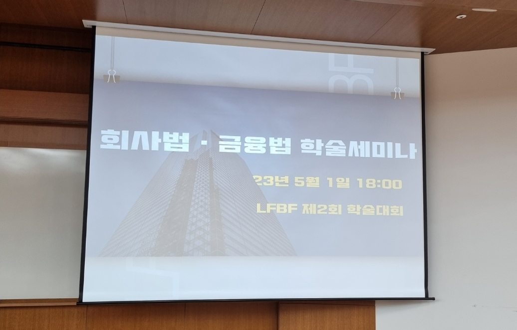 2023.05.01에 제2회 학술세미나를 진행하였습니다. 이번 세미나는 새롭게 선발된 1학년 신입회원들을 모시고 진행되었습니다. 신입회원들 모두 모두 환영합니다! :) ▲남궁주현 지도교수님께서 개회사를 해주고 계시는 모습입니다. ▲ 첫번째 주제인 'SM 신주 및 전환사채 발행 금지 가처분 사건'의 첫번째 발표자 박시온 회...